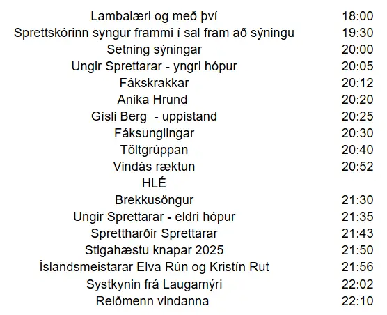 Hin árlega sýning hestamannafélagsins Spretts, Dymbilvikusýningin, fer fram 1. apríl nk. í Samskipahöllinni. Ljúffengt lambalæri og með því verður á boðstólum fyrir kr. 3500 frá kl. 18:00 Sprettskórinn syngur í