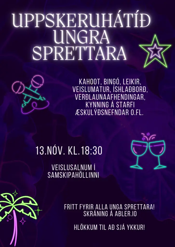 Uppskeruhátíð Spretts verður haldin með pompi og prakt laugardaginn 15.nóvember nk. í veislusalnum Arnarfelli í Samskipahöllinni. Miðaverði er stillt í hóf, einungis 7500kr. Í boði verður veislumatur, veislustjórn, skemmtiatriði, verðlaunaafhendingar, skemmtun og gleði. Miðasala fer fram á abler.io, en einnig er hægt að versla sér miða í anddyri veislusalarins fimmtudaginn